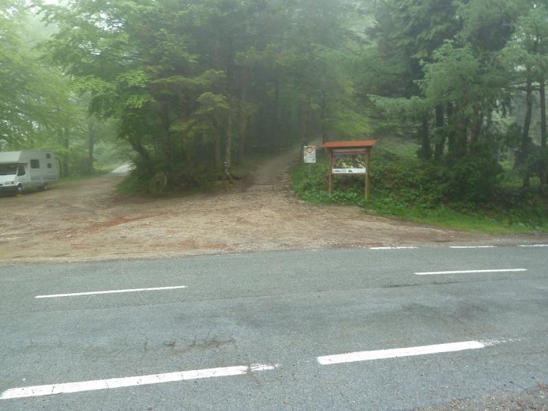 Llegados al aparcamiento donde ya había algo de niebla y un poco langarra, nos ponemos en marcha y tomamos la GR-11 enfrente de donde hemos aparcado. El sendero marcha entre el hayedo que está precioso. Llegamos donde un poste anunciador y seguimos por la GR-11.Pasamos junto a una caseta y continuamos siguiendo las marcas hasta llegar al raso y seguimos las marcas. Hay poste indicador.